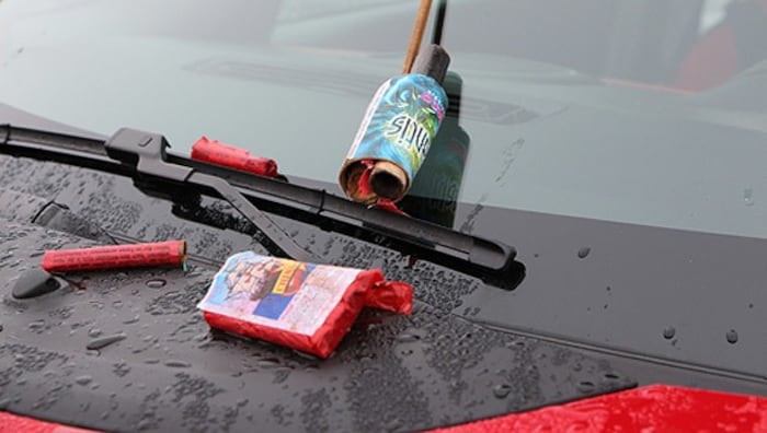 Nicht immer steht Absicht hinter dem „Beschuss“. In Wohngegenden, in denen viele Menschen wohnen, fliegen viele Raketen und Böller umher; die Wahrscheinlichkeit, dass ein Auto getroffen wird, ist hoch. Sollten die Feuerwerkskörper auf Fahrzeugen explodieren, können sie unschöne Schmauchspuren, kleine Verbrennungen oder Explosionslöcher im Lack provozieren. Auch manches Autofenster hat schon durch umherfliegende Pyrotechnik Schaden genommen. Die meisten dieser Spuren lassen sich mit Seifenlauge, Poliermittel oder Lackstift wegzaubern.
