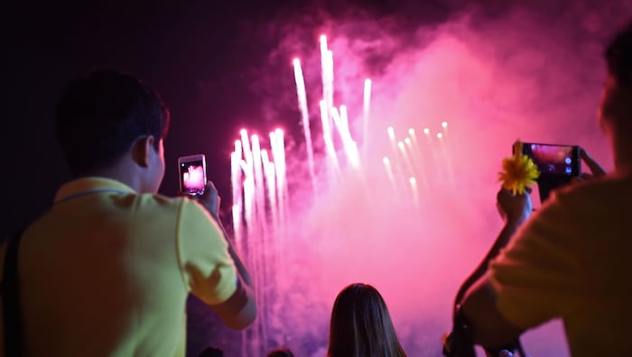 Dunkle Nacht auf der einen Seite, grelle Farben auf der anderen - Feuerwerke stellen die Kameraautomatik vor Herausforderungen. Deshalb sollten Sie, wie eingangs erwähnt, diese abschalten und stattdessen sämtliche Einstellungen manuell vornehmen. Um das Schwarz des Nachthimmels korrekt abzubilden und das Bildrauschen zu minimieren, sollten Sie eine möglichst geringe Lichtempfindlichkeit (ISO 100) wählen. Die Blende sollten Sie eher geschlossen halten (etwa f/8 bis f/16), um die Schärfentiefe zu erhöhen. Experimentieren Sie mit den Werten herum: Sollte Ihnen das Bild insgesamt zu dunkel sein, öffnen Sie die Blende (kleine Blendenzahl) bzw. schließen Sie die Blende (große Blendenzahl), wenn das Bild zu hell ist. Über die Belichtungszeit steuern Sie indes die sichtbare Länge der Leuchtspuren am Himmel. Ein guter Anfangswert, um sich heranzutasten, sind drei Sekunden.