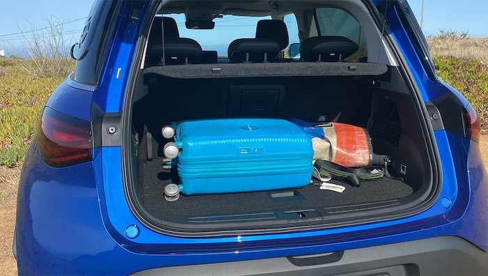 In den Kofferraum passen je nach Modell 323 oder 313 Liter Gepäck, allerdings ist die Nutzbarkeit etwas eingeschränkt. Der Ladeboden lässt sich zwar herausnehmen, aber nicht auf den unteren Boden drauflegen, sodass man das Gesamtvolumen nicht im Ganzen nutzen kann. Sehr smart (im eigentlichen Wortsinn) ist hingegen der Umklappmechanismus der Rücksitzlehnen. Der wird zwar - wie in der Klasse üblich - durch ein Ziehen an einer Lasche vorn am Sitz entriegelt, aber es ragen zwei weitere Laschen durch die Lehnen in den Kofferraum: Dadurch klappt es auch von hinten aus.