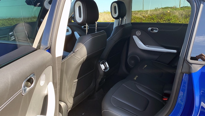 Das Platzangebot ist formidabel. Vorne sitzt man sehr entspannt, auch hinten herrschen opulente Platzverhältnisse, auch für groß Gewachsene hinter groß Gewachsenen. Es ist E-Auto-typisch lediglich die Sitzbank etwas kurz und flach ausgefallen, aber Knie-, Kopf- und Fußfreiheit sind vorbildlich. Die Türgriffe sind vorne und hinten so geformt, dass sie an den Beinen nicht für Druckstellen sorgen. Die Rücksitzbank ist geteilt um 13 Zentimeter verschiebbar - serienmäßig.