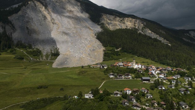 Von dem Berg oberhalb des Dorfes war in der Nacht zum 16. Juni eine riesige Fläche abgerutscht. Nach Schätzungen bewegten sich deutlich mehr als eine Million Kubikmeter Geröll und Gestein Richtung Dorf. Die Behörden hatten seit Wochen damit gerechnet und das Dorf deshalb vorher geräumt.
