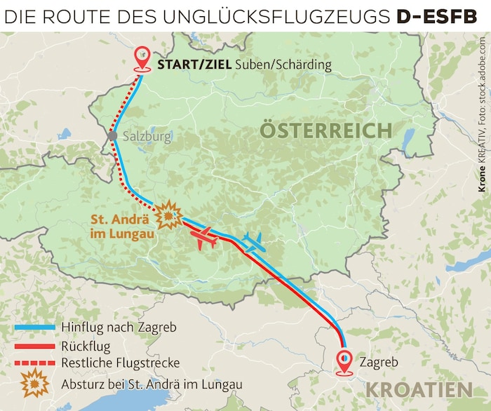 Neue Details zum tragischen Flugzeugabsturz in St. Andrä: Unter den Opfern waren zwei erfahrene Piloten aus dem benachbarten Innviertel und neben einem Deutschen auch ein Salzburger.