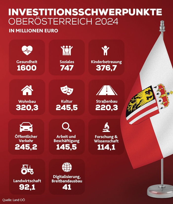 Er und sein Stellvertreter Manfred Haimbuchner (FPÖ) haben das Budget unter das Motto „Menschen entlasten. Wirtschaft fördern“ gestellt. Für den ersten Teil dieser Losung sind knapp 279 Millionen Euro vorgesehen - von Wohn- und Heizkostenzuschuss über Sozialhilfe und Fernpendlerpauschale bis hin zum Kinderbetreuungsbonus und Eltern-Kind-Zuschuss.