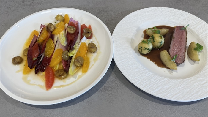 Peter Lehner zeigt uns diesmal, wie die Entenbrust saftig bleibt und die Kruste so richtig knackig wird. Selbstgemachte Erdäpfelknödel und glacierte Gewürzäpfel machen das Gericht schon zu einer köstlichen Anregung für die kommenden Weihnachtstage. Der Chicoréesalat den Peter wie ein Gemälde anrichtet, passt mit seinen bitter-süß-säuerlichen Aromen perfekt dazu.