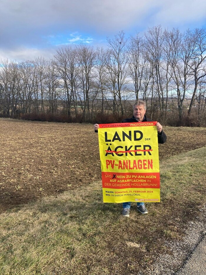 Eigentlich war der Passus der Volksbefragung in Hollabrunn am 25. Februar über sechs Freiland-Photovoltaik gut gemeint: „Wir hätten das nicht reinnehmen müssen - wollten aber, dass das Ergebnis auch fix eingehalten werden muss“, erläutert Bürgermeister Alfred Babinsky. Der Schuss ging allerdings nach hinten los.