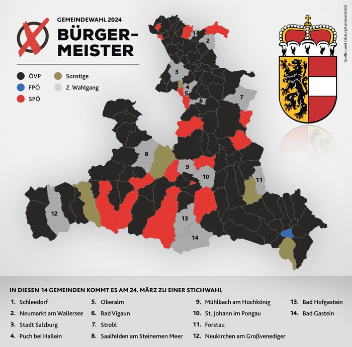 Brenzlig wird es am 24. März in etlichen Salzburger Gemeinden. Es sind vor allem ÖVP-Bürgermeister, deren Sessel wackelt.