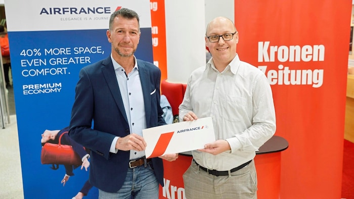 The evening at the Urania cinema was a very special highlight for our main winner Stefan M.: Guido Hackl, Air France Country Manager for Austria, Czech Republic and Slovakia, presented him with tickets for a flight to Paris for two people. He will spend the night at the Hotel Le Belmont - and the lucky winner was presented with a bottle of champagne at the premiere party. C'est français!