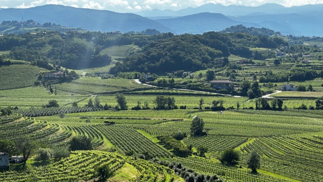 In Slovenia it is called Goriška Brda, in Italy Collio - the green border runs invisibly through its vineyards and olive groves, the country road is in one bend in one country, in the other bend in the other.
