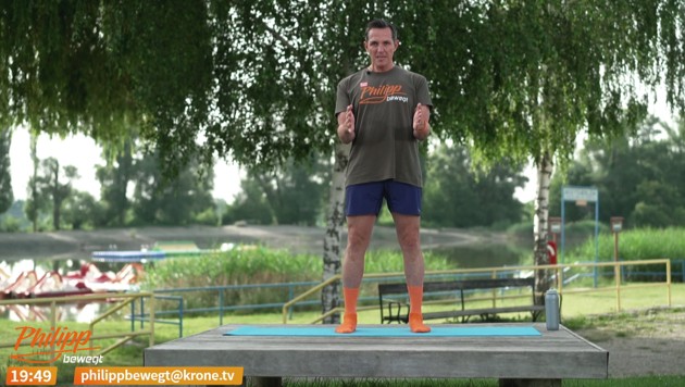 Philipp meldet sich am Freitag aus dem Strandbad Klosterneuburg, da freuen sich auch die Gelsen! Diesmal steht das Gleichgewicht im Fokus. Im Video oben gibt es die ganze 20-Minuten-Einheit zum Nachturnen.