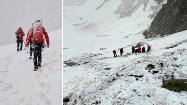 Dem Polizeihubschrauber Libelle Tirol gelang es im beginnenden Unwetter noch, zwei Bergretter knapp unter die Scharte (2697 m) auf Pettneuer Seite zu bringen. Die beiden stiegen weiter auf und jenseits zu den Deutschen ab, die sich 50 Meter unter der Scharte befanden. Schönherr: „Sie warteten das Gewitter ab und seilten die Deutschen dann zwei Seillängen ab.“
