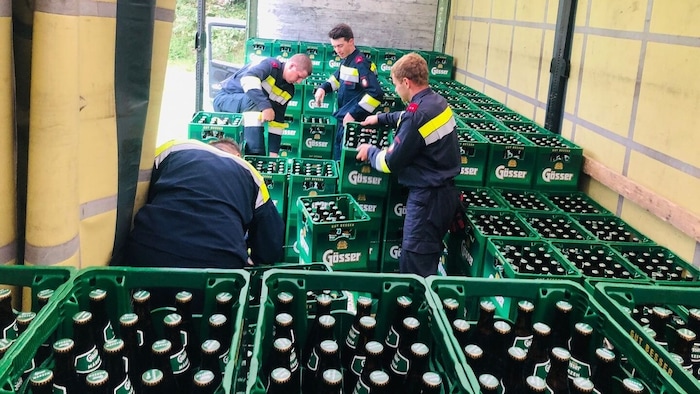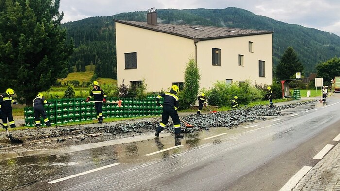 Ungewöhnlicher Einsatz für die Feuerwehr in Stadl an der Mur. Ein Biertransporter verlor am Dienstag mitten im Ort einen Teil seiner Ladung.