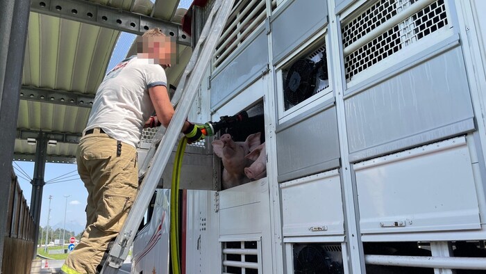 Damit aber noch nicht genug. Die Wasserversorgung im Transporter war nicht gegeben. Der 200-Liter-Tank der Schweine war leer. Nachdem der Lkw angehalten wurde, konnten die Tiere abgekühlt und der Wassertank aufgefüllt werden.