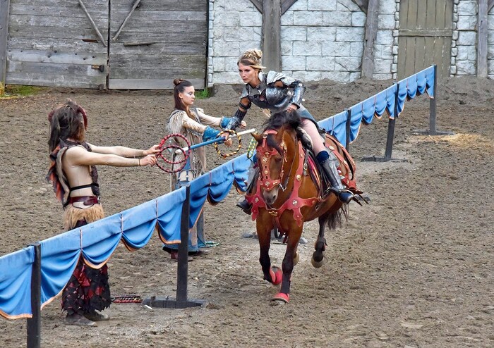 Wer kein eigenes Feitl will, kann sich auch beim Bogenschießen, Axtwerfen, Glücksrad oder Pony reiten austoben. Der Durst wird am besten beim „Metfred“ gestillt, wo man sich durch Met aus eigener Produktion kosten kann. Das Highlight des Tages sind aber wohl die Ritterturniere: über eine Dauer von knapp zwei Stunden kann man dem Alltag entfliehen, und in einer Manege, in der circa 1200 Menschen Platz finden, das Schauspiel verfolgen.