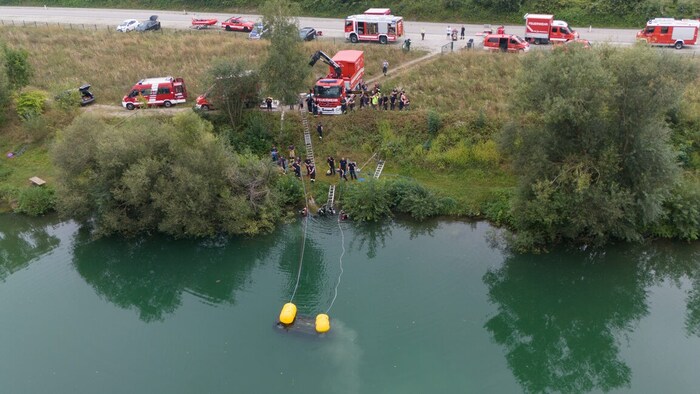 "We could still see bubbles rising in the water," says Valentin Hebetswallner, head of operations for the Mining fire department, who was quickly on site with his comrades after the alarm was raised. This was a relief for the emergency services - at least they had a clue as to where to find the car.