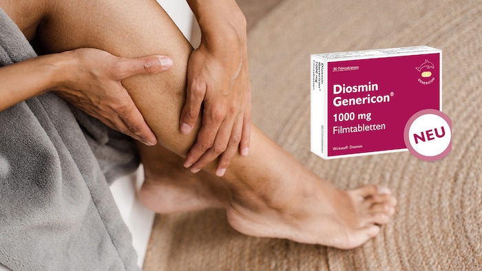 Sie suchen nach einer effektiven Lösung? Diosmin Genericon® wird zur Linderung der Symptome wie Verspannungen, Schweregefühl in den Beinen, Schmerzen und nächtlichen Wadenkrämpfen bei chronischem Venenleiden der Beine empfohlen. Das rezeptfreie Arzneimittel eignet sich auch für die symptomatische Behandlung von Hämorrhoiden, wenn eine Verschlimmerung der Hämorrhoidensymptome auftritt. Denn Diosmin, der Wirkstoff in Diosmin Genericon®, beeinflusst die Funktion der Venen und schützt diese. Außerdem verringert der Wirkstoff das Auftreten von Schwellungen und hat auch eine entzündungshemmende Wirkung auf die Blutgefäße. Diosmin Genericon® wird nur für Erwachsene empfohlen.