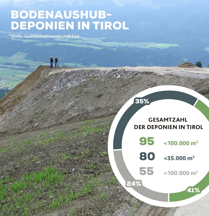 Mittlerweile vergehe kein Monat ohne neue Ansuchen für Bodenaushubdeponien in ganz Tirol. „Alleine seit 2022 wurden dafür rund 1,9 Millionen Quadratmeter Grund und Boden verbraucht!“