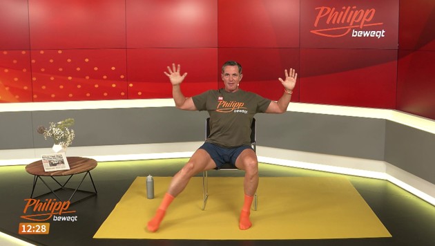 Donnerstag ist Sesseltag, was bedeutet, dass alle Übungen auch im Sitzen gemacht werden können. Wer mag, kann dazwischen aber auch im Stehen weiterüben. Die ganze Folge zum Nachturnen gibt es im Video oben.