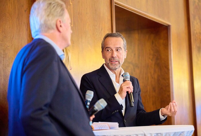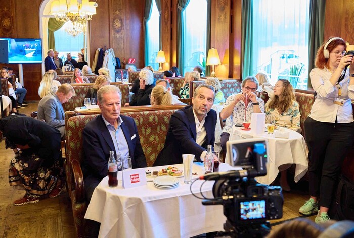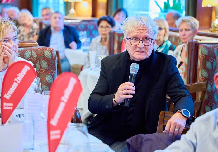 The two grand coalition star guests Christian Kern and Reinhold Mitterlehner were welcomed by "Krone" columnist Conny Bischofberger and interviewed on stage. Both were naturally less than enthusiastic about the election result.