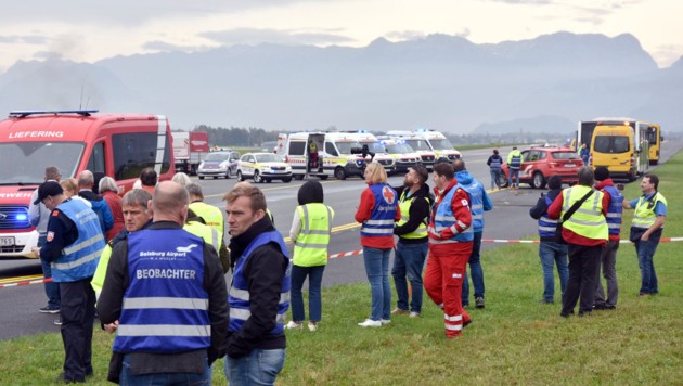 Bei dem Szenario waren zahlreiche Einsatzkräfte der Blaulichtorganisationen beteiligt. Neben der Flughafenfeuerwehr rückten Berufsfeuerwehr und Freiwillige aus. Rotes Kreuz, Polizei und Kriseninterventionsteam unterstützten. Trainiert wurde in erster Linie das Zusammenspiel der verschiedenen Organisationen.