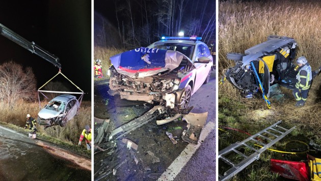 Spectacular accident in Ehrwald in the Tyrolean district of Reutte on Tuesday evening! A local man (39) drove his car into the oncoming lane after skidding. He then collided with a police car. Both the 39-year-old and the two officers were injured.