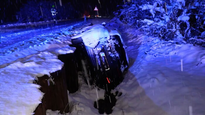 The snow on the road caused nine vehicles to end up in a ditch on the route from Lustenau to Lauterach on Thursday evening. After the first driver left the road, eight more drivers left the very narrow road while the police were recording the accident, according to the police. No one was injured, but some of the vehicles were severely damaged.