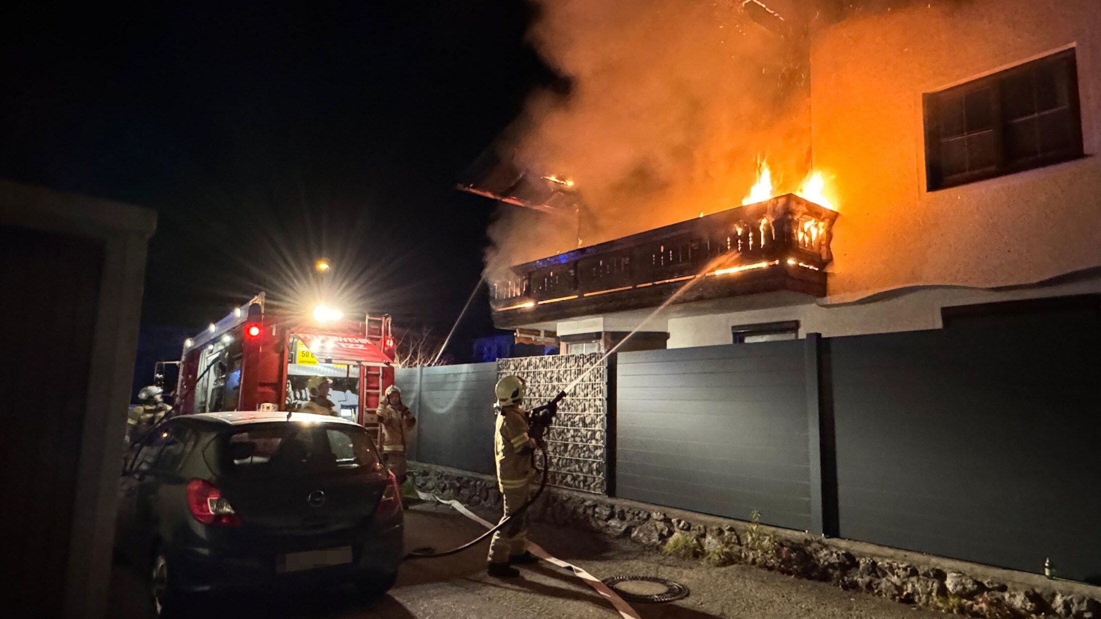 Gegen 1.15 Uhr wurde Alarm geschlagen. „Brand Mehrfamilienhaus Balkon“, lautete der Einsatztext, den die Leitstelle Tirol ausschickte. „Als die Einsatzkräfte vor Ort eintrafen, stand das Gebäude bereits in Flammen“, heißt es vonseiten der Polizei.