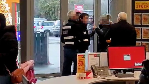 Wildes Geschrei vor dem Ausgang des Kika in Linz-Urfahr: Ein Kunde und ein Sicherheitsmitarbeiter rangeln, kämpfen regelrecht um ein Produkt, an dem sie beide zerren. Bis der Kunde völlig ausrastet und dem Security-Mitarbeiter die Brille vom Gesicht reißt. Die „Krone“ hat ein Video vom schockierenden Vorfall zugespielt bekommen.