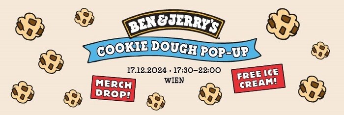 Am 17. Dezember 2024 ab 17.30 Uhr verwandelt Ben & Jerry’s den Raum D im MuseumsQuartier Wien in ein Cookie Dough Paradies. Zum 40. Geburtstag der beliebtesten und legendären Keksteig-Eiscreme von Ben & Jerry’s gibt es 1.000 Becher Cookie Dough (auch vegan!) – komplett gratis!