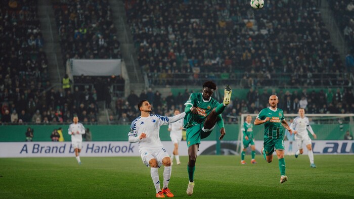 20 chancenarme Minuten waren gespielt, als Jubel aufbrandete. Nach einem Pass von Matthias Seidl in die Tiefe war der schnelle Jansson früher als sein Gegenspieler am Ball. Der schottische Referee John Beaton entschied auf Elfmeter, wurde aber vom VAR korrigiert, weil die Attacke Zentimeter außerhalb des Strafraums stattfand (22.). Bendeguz Bolla trat den Freistoß in die Mauer. Rapid präsentierte sich nun stärker – Seidl wurde geblockt (30.) – und Jansson weiter handlungsschnell. Kopenhagens Robert kam gegen den Rapidler zu spät und war mit Gelb noch gut bedient (32.).