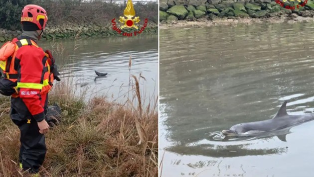Das Tier steckte nämlich im seichten Wasser der Lagune fest. Ein aufmerksamer Radfahrer erspähte den Meeressäuger und alarmierte die Feuerwehr, wie lokale Medien berichteten.