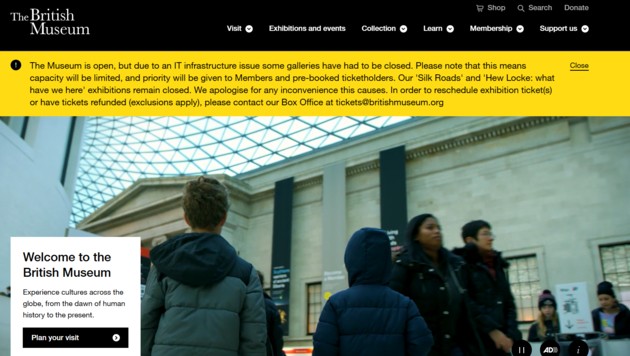 Visitors are informed about the restrictions on the museum's website. "The museum is open, but due to an IT infrastructure problem, some galleries had to be closed", the museum states (see screenshot above).