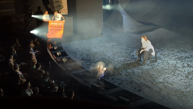 Die Demonstranten kritisierten auf einem Banner, eine Erderwärmung von mehr als 1,5 Grad gleiche einem globalen Schiffbruch. Sie zündeten auch eine Konfettikanone, wie auf einem Video zu sehen ist, das die Gruppe veröffentlichte. Weaver („Avatar“, „Alien“) wurde von Helfern von der Bühne geholt.