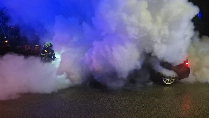 Als die Feuerwehr eintraf, stand das Auto bereits in Vollbrand. Die Florianis hatten das Feuer aber rasch gelöscht.