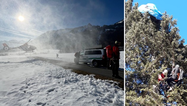 Spectacular operation for the mountain rescue team on Sunday afternoon in the Tyrolean Außerfern: A paraglider crashed on the Hahnenkamm near Reutte and got stuck on a tree in rough terrain. Due to the thin branches, the man was in danger of falling even further. In the end, the aerial adventure turned out to be harmless.