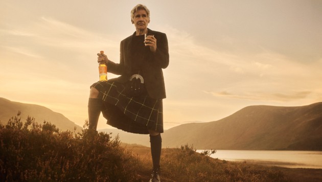 „Indiana Jones“ im Schottenrock? Ja, echt, das ist kein KI-Fake-Foto. Harrison Ford trägt tatsächlich in einer neuen Werbung des Whiskey-Herstellers Glenmorangie einen Kilt.