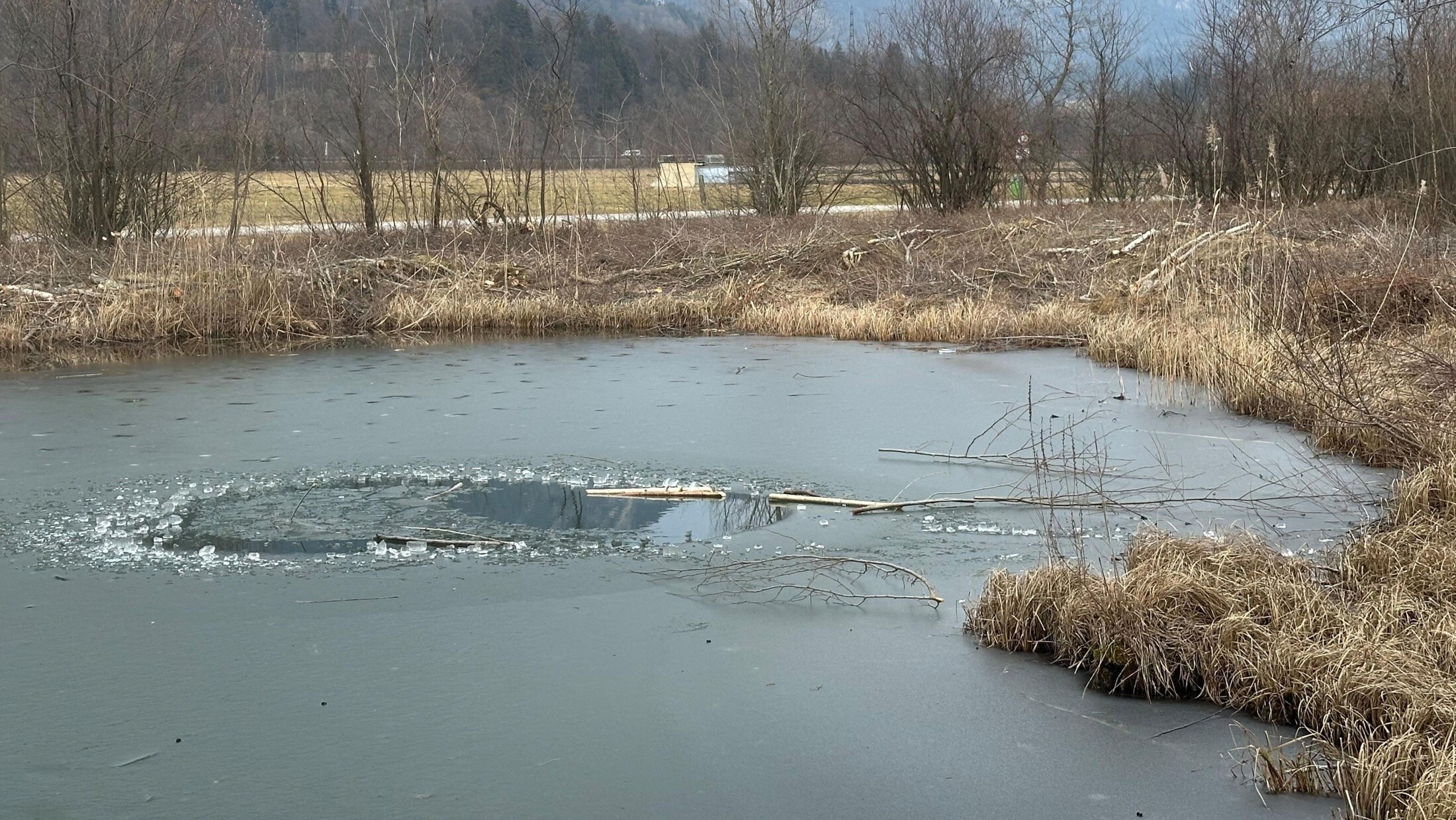 There was a gaping hole in the middle of the frozen biotope and a woman was in the ice-cold water!