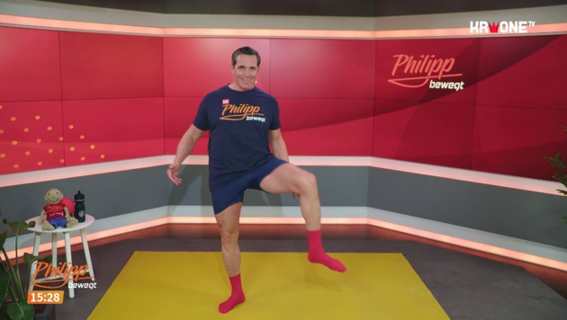 „Schauen wir mal, ob´s reicht für´s Staatsopernballett“, scherzt Vorturner Philipp bei den Übungen zur Mobilisation der Hüftgelenke. Machen Sie sich im Video oben selbst ein Bild und turnen Sie gleich die ganze Folge nach!