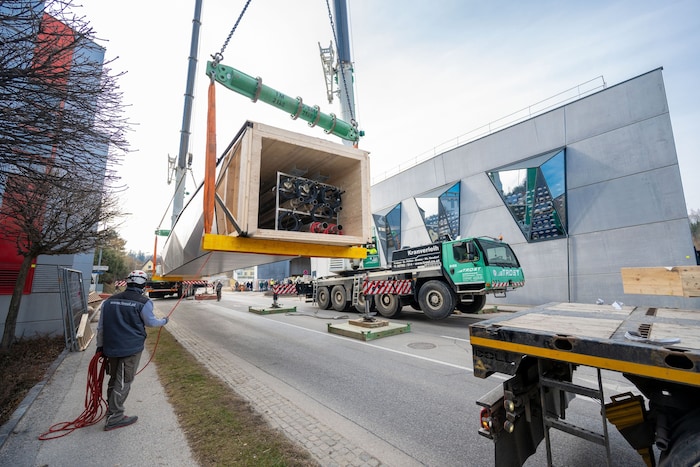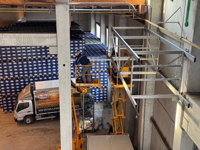 Bis zu 36.000 Flaschen pro Stunde kann die Privatbrauerei Zwettl mit ihrer neuen Anlage abfüllen – das sind fast 300.000 Flaschen an einem Acht-Stunden-Arbeitstag. Dafür wurde das Lager, das sich auf der anderen Straßenseite befand, abgesiedelt und eine 23 Meter lange „Bier-Pipeline“ errichtet. Bei der Installation vor wenigen Tagen mussten zwei Schwerlastkräne die 33 Tonnen schwere Rohrbrücke anheben.