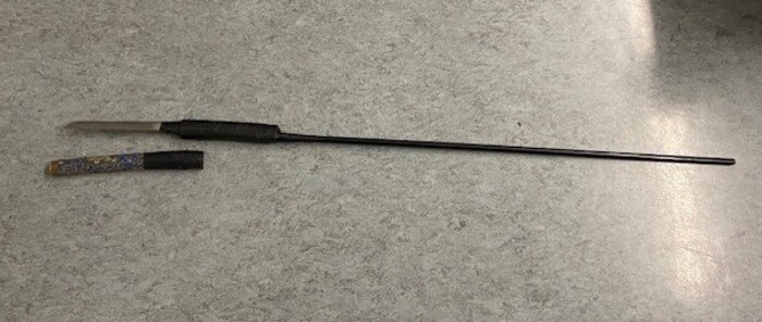 Der gefährliche Vorfall ereignete sich gegen 14 Uhr. Bei dem selbstgebastelten „Speer“ handelte es sich laut Polizei um ein japanisches Schwert, das er mit einem Besenstiel zu einem improvisierten Speer umfunktioniert hatte.