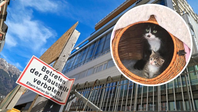 Ohne Mutter wurden drei Katzenbabys völlig hilflos auf einer Großbaustelle in der Innsbrucker Innenstadt gefunden. Die Suche nach der Mama war Tage später tatsächlich erfolgreich, jetzt ist die Familie im Tierheim Mentlberg wieder glücklich vereint.