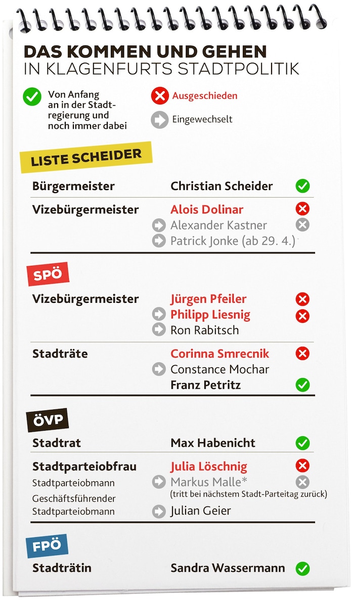 Vergangenen Donnerstag wurde Julian Geier zum geschäftsführenden Stadtparteiobmann bestimmt. „Markus Malle tritt beim nächsten Parteitag, der noch heuer sein wird, zurück“, sagt Geier. Es ist ein Kommen und Gehen in der Stadtpolitik. Die SP tauschte schon zweimal den Vizebürgermeister aus, auch bei der Liste Scheider tritt bei der Gemeinderatssitzung am 29. April schon der dritte „Stadtvize“ an. Die VP hat ebenso schon den dritten Stadtparteichef.
