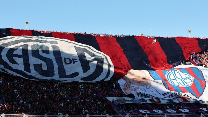 Auch auf den Bannern der Fans auf der Tribüne waren Bilder des Papstes zu sehen. Papst Franziskus galt als großer Fußballfan und war Mitglied des Vereins aus Buenos Aires. San Lorenzo will sein neues Stadion nach dem Papst benennen.