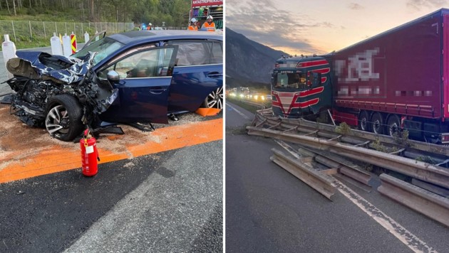 Der Lkw-Lenker (53) kam mit dem Schrecken davon und blieb unverletzt. Sowohl am Lastwagen als auch am Pkw entstand massiver Schaden. Auch die Verkehrsleiteinrichtungen im Bereich der Unfallstelle wurden beschädigt.