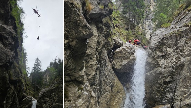 Dann ging es blitzschnell: Die Hubschrauberbesatzung meldete nach kurzer Zeit, dass sich im unteren Bereich der Schlucht eine leblose Person im Wasser befindet. Zwei Bergretter kämpften sich sofort durch die Schlucht zur Unglücksstelle, zwei weitere Bergretter eilten zur Lehrerin und zu den übrigen elf Mädchen, um diese zu sichern. Die Lehrerin war entgegen der Erstmeldung doch nicht abgängig.