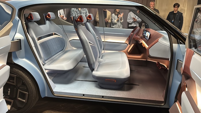 Was die Innenraummaterialien betrifft, gibt man sich deutlich gesprächiger. Kia will statt Kunststoff in Zukunft verstärkt biobasierte Werkstoffe in den Innenräumen seiner Autos einsetzen. Dafür arbeitet das Unternehmen mit Partnern wie Bcomp, Simplifyber und Biomyc zusammen. Der Kia Concept EV2 zeigt erste Lösungen für die vermehrte Verwendung nachhaltiger Materialien zeigt, wie Nathalie Bucher, die dafür verantwortliche Designerin, oben im Video erklärt.