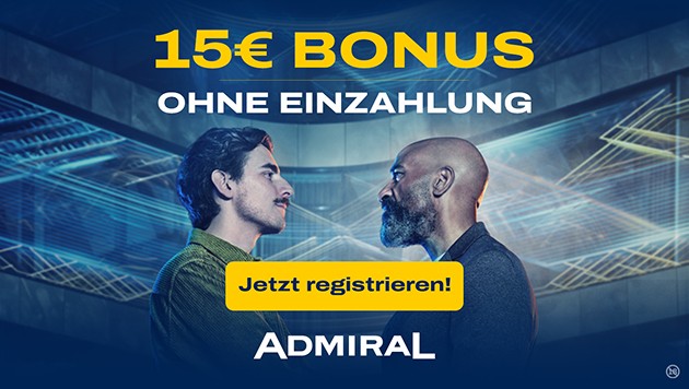 Wetten ohne Risiko? Das geht – mit dem exklusiven ADMIRAL-Angebot für krone.at-Leser. Jetzt 15 € Startbonus ohne Einzahlung kassieren und zusätzlich bis zu 200 € Einzahlungsbonus holen. Schnell sein lohnt sich: Denn die Aktion ist limitiert!