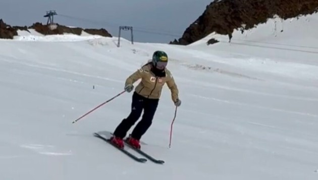 Die wichtigste Sache: Das lädierte Knie, bei dem neben dem Kreuzband auch der Außenmeniskus gerissen war, und von Knie-Koryphäe Doktor Christian Fink in Hochrum erfolgreich operiert wurde, hält. „Ich habe kaum etwas gespürt und es passt wirklich sehr gut. Einziges Problem aktuell ist ein Knorpelschaden. Also wenn ich etwas spüre, dann den“, erzählt „Emy“, die am Gletscher auch die ersten Schwünge mit ihrem grünen „Rauch“-Helm absolvierte. „Der war vergangenen Herbst vor der Abreise nach Südamerika ja gar nicht mehr fertig geworden.“