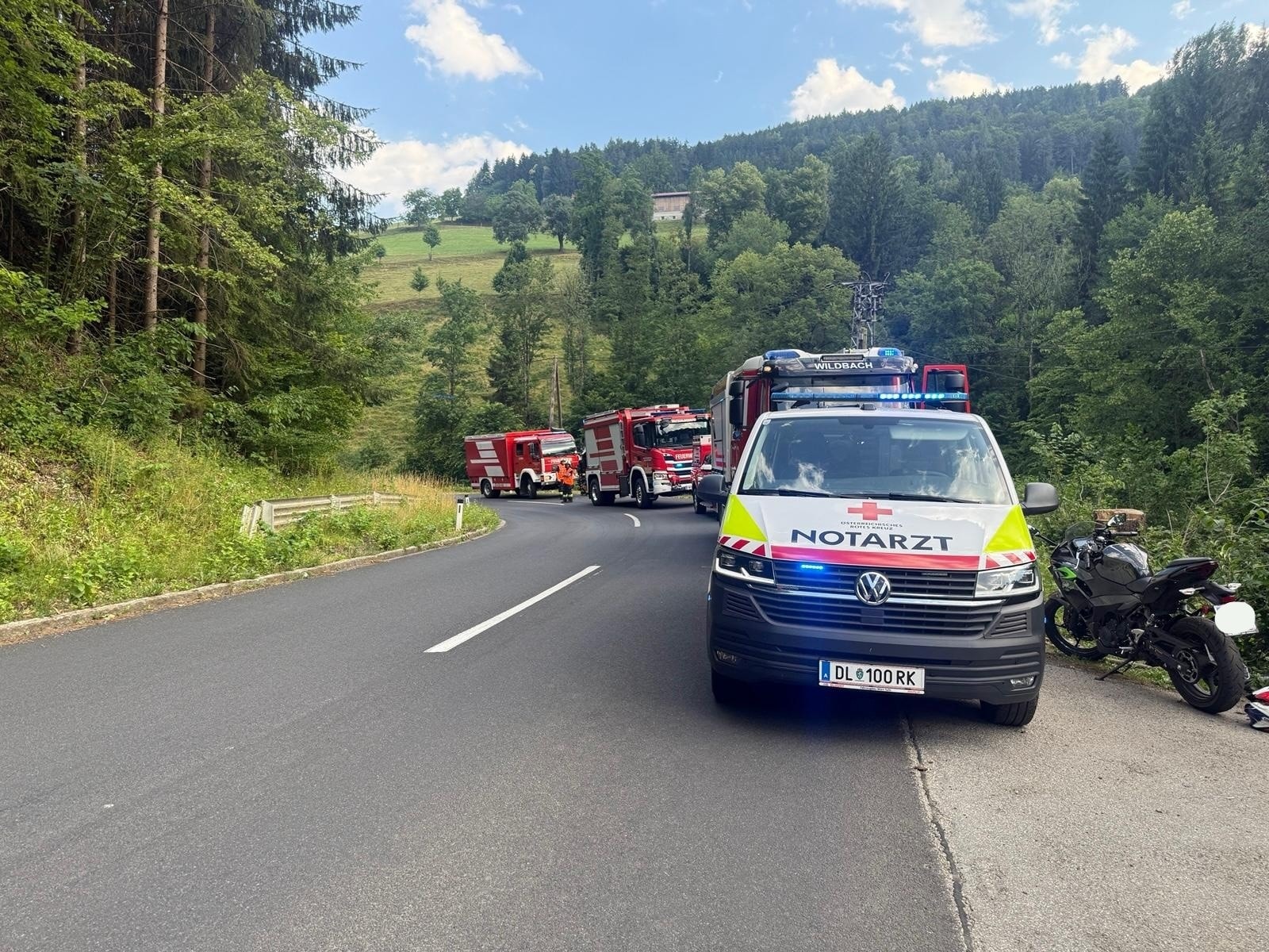 Dienstagnachmittag ereignete sich ein schwerer Verkehrsunfall mit einem Motorrad in Wildbach (Bezirk Deutschlandsberg): Der Lenker landete dabei mitsamt seinem Kraftfahrzeug im Bachbett des Wildbachs. Er wurde unbestimmten Grades verletzt.