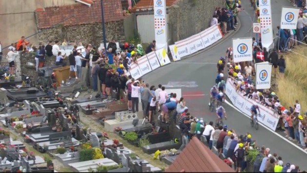 Die zweite Etappe der Tour wurde nicht nur vom sportlichen Wettkampf der Rad-Profis geprägt, sondern auch von makabren und respektlosen Szenen. Einige Fans machten nämlich nicht einmal vor Gräbern halt, um eine bessere Sicht auf das Event zu erhaschen.