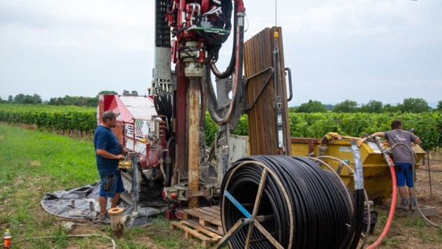 Ist man am Mittwoch an dem Grundstück vorbei gefahren, sah man auch einen Bohrturm gleich neben der Straße zwischen den Weingärten. Sein Zweck: Festzustellen, wie weit der Boden wärmeleitfähig ist. Sprich: Ob man später für die Klinik Wärme aus der Erde gewinnen kann. Diese Wärme kann dann über eine Wärmepumpe zum Heizen oder zur Warmwasserbereitung genutzt werden.